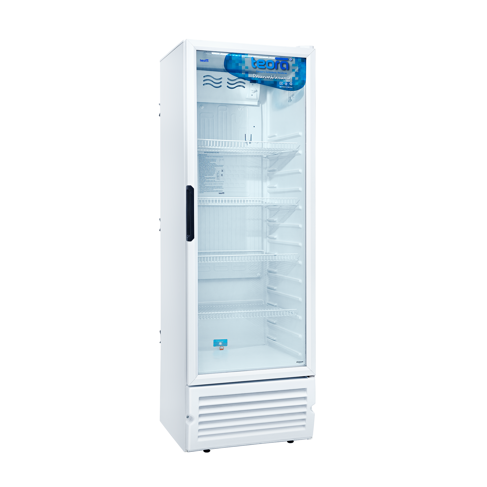Heladera exhibidora vertical capacidad 450 lts. Puerta de vidrio termopanel. Iluminación Led. Estantes regulables.