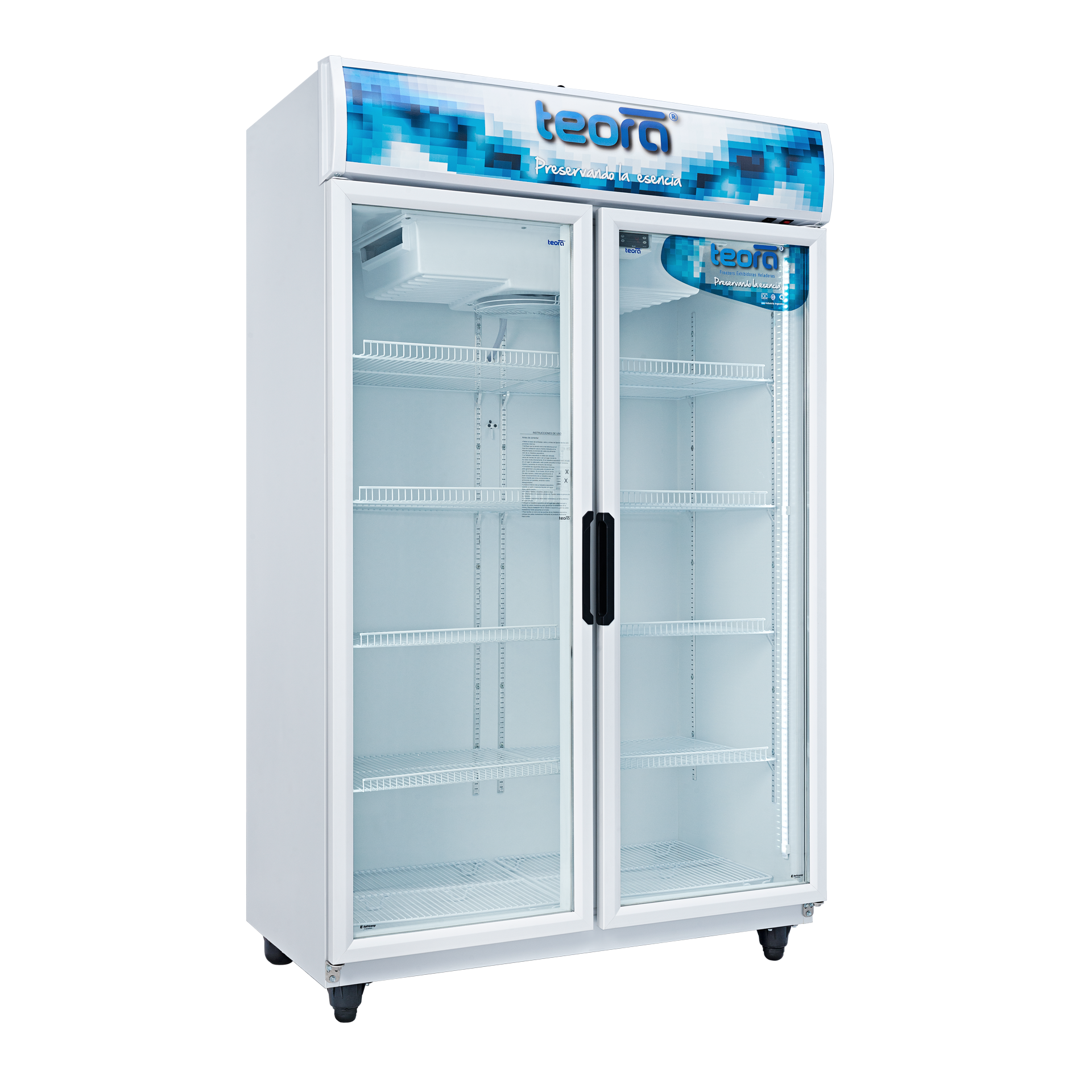 Heladera exhibidora vertical 2 puertas capacidad 950 lts. Puertas de vidrio termopanel. Iluminación Led. Estantes regulables. Sistema de frío forzado que garantiza excelente calidad de frío para botellas, latas, y todo producto envasado.